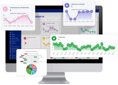 Controle o desempenho de seu atendimento em tempo real com dashboards repletos de informações relevantes para sua tomada de decisão. Controle o desempenho de seu atendimento em tempo.